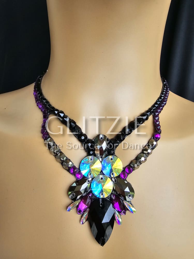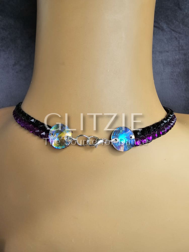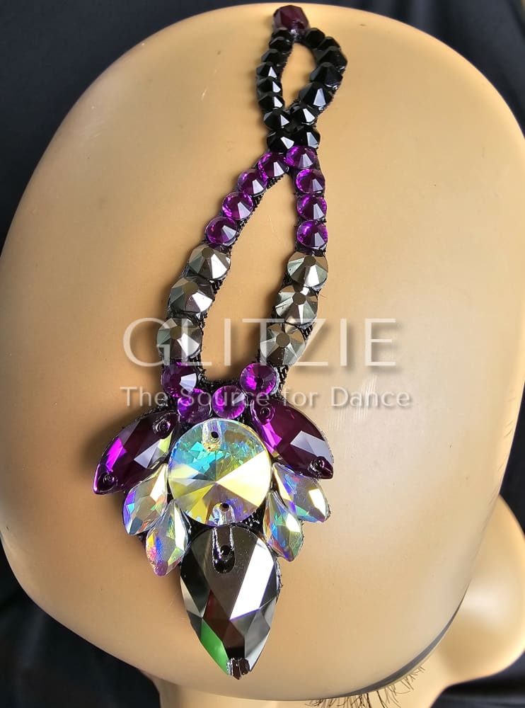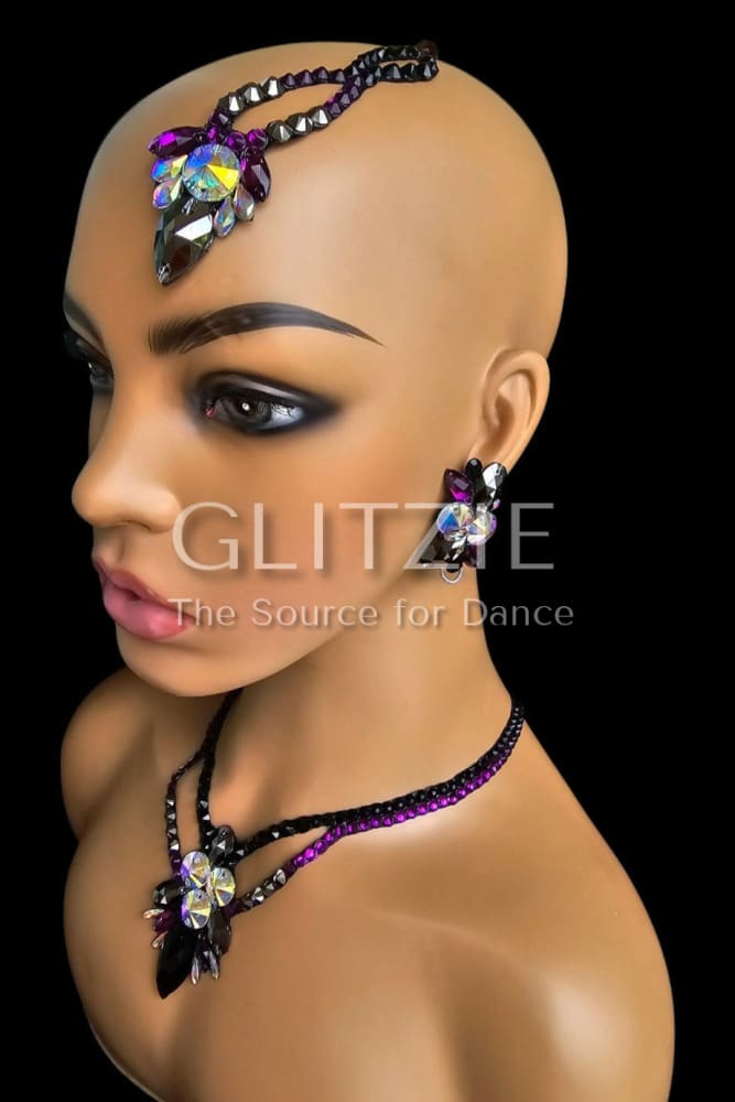 This set is made with “Luxe” Purple Velvet/Hematite /Jet/AB elements and has a very comfortable skin-safe silicone backing. That maintains its position on the skin with sudden movements and turns.