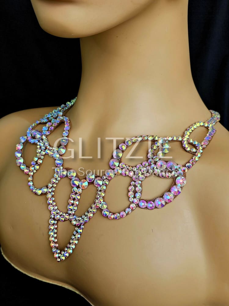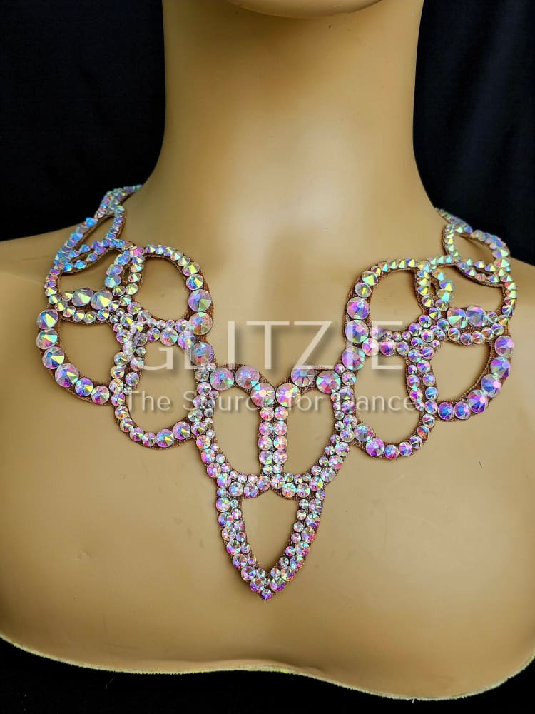 This set is made with “Luxe” AB Crystals and has a very comfortable skin-safe silicone backing. That maintains its position on the skin with sudden movements and turns.
