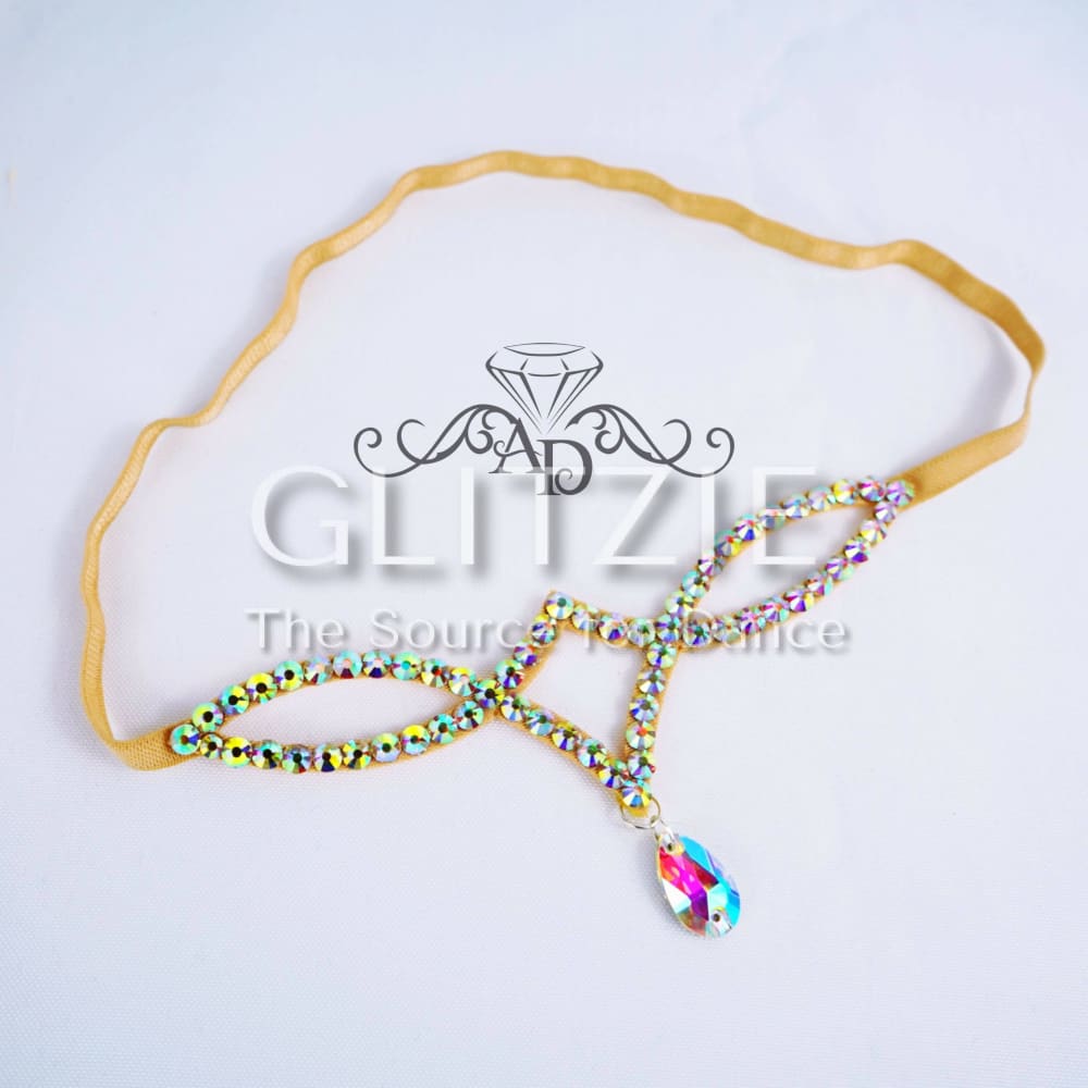This high-quality hair jewelry is attached around the head with elastic band and has snap closure.