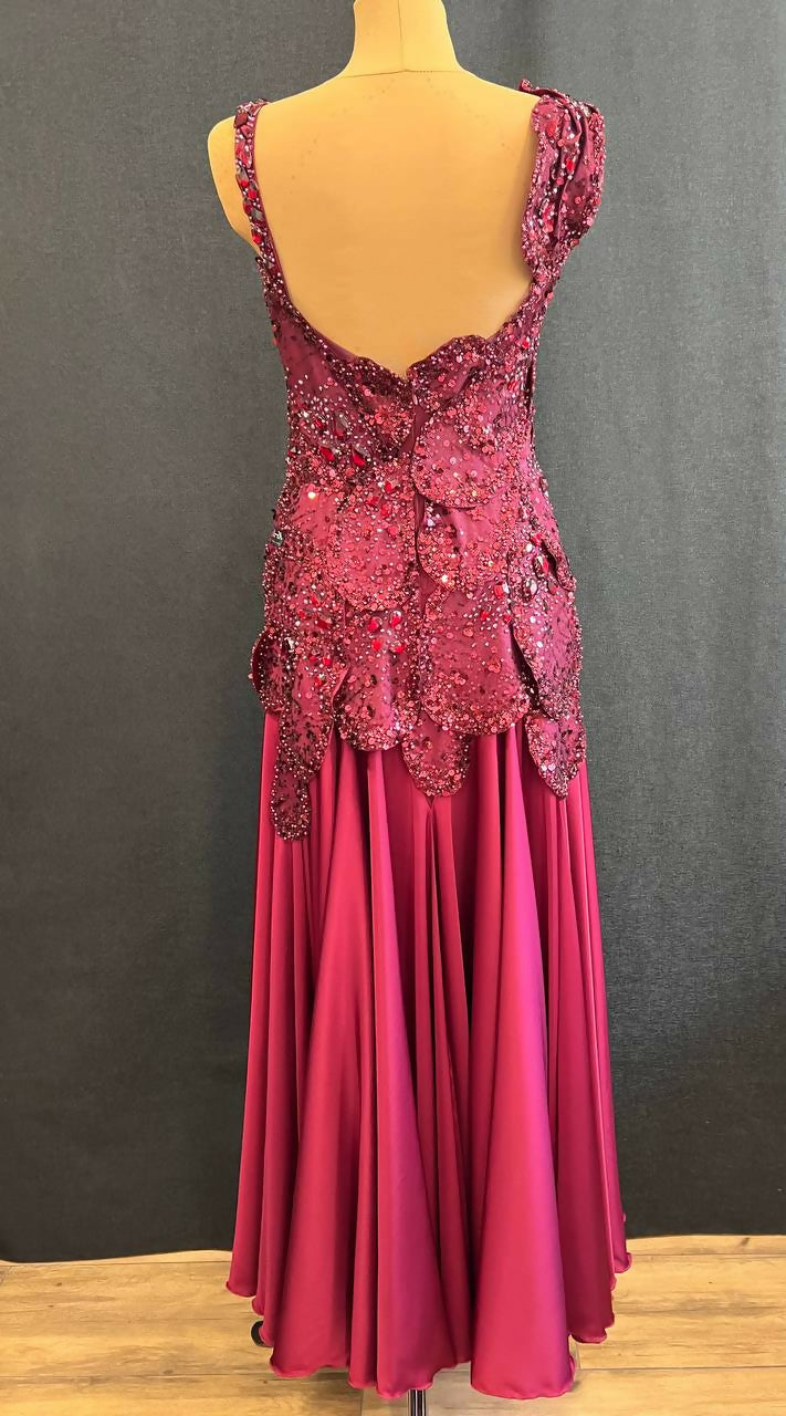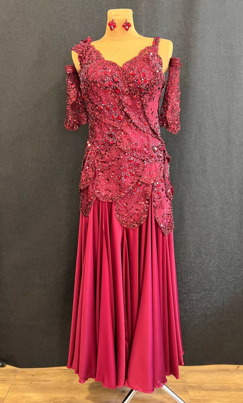 Fabric: beflex and silk color Mellow Cherry, factory-made lace on the thin net with sequins and beads color Mellow Cherry.