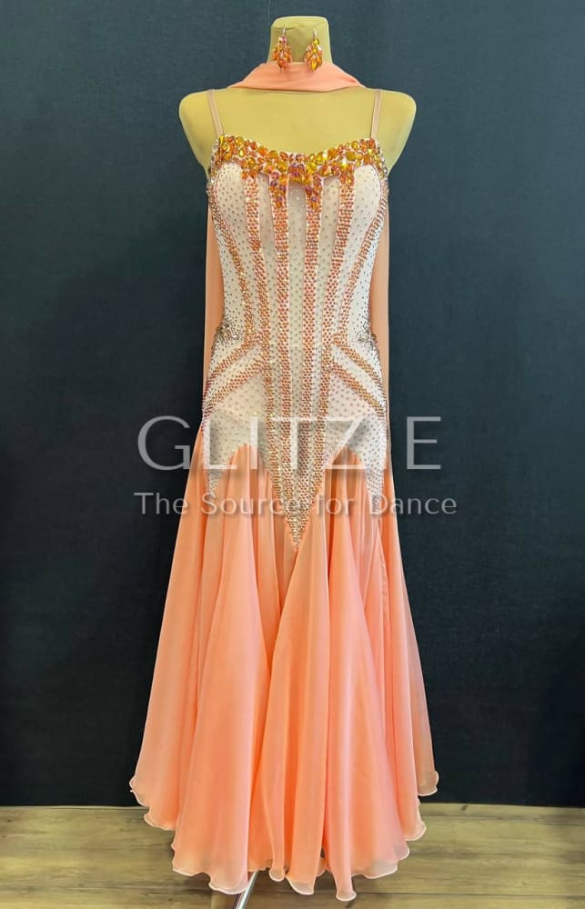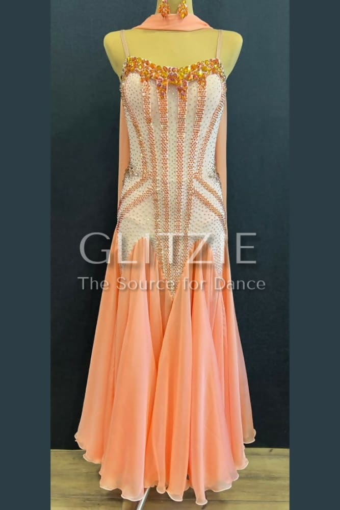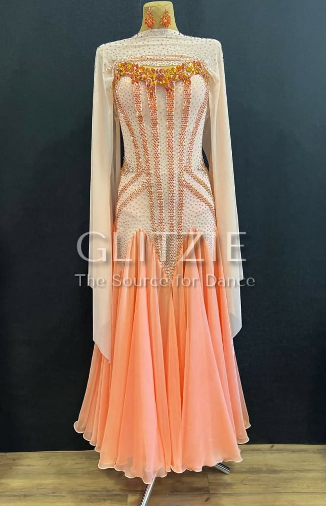 Fabric: beflex, chiffon and stretch net color Soft Peach.