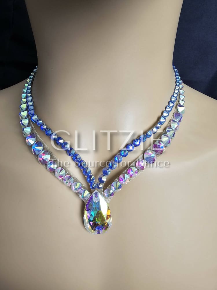Ballroom dance jewelry necklace. Crystals lt saphire ab +AB