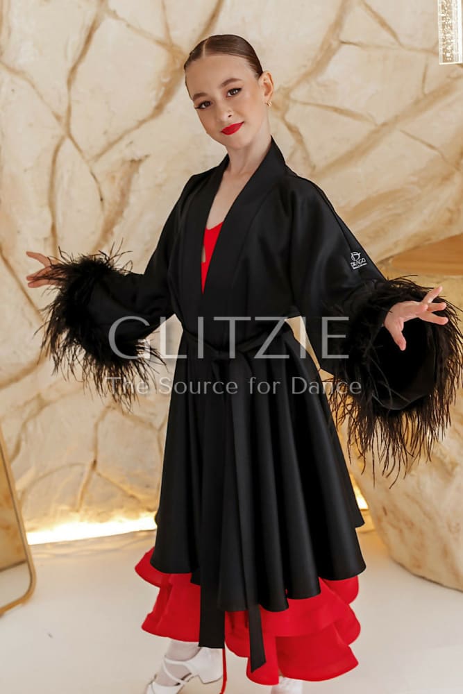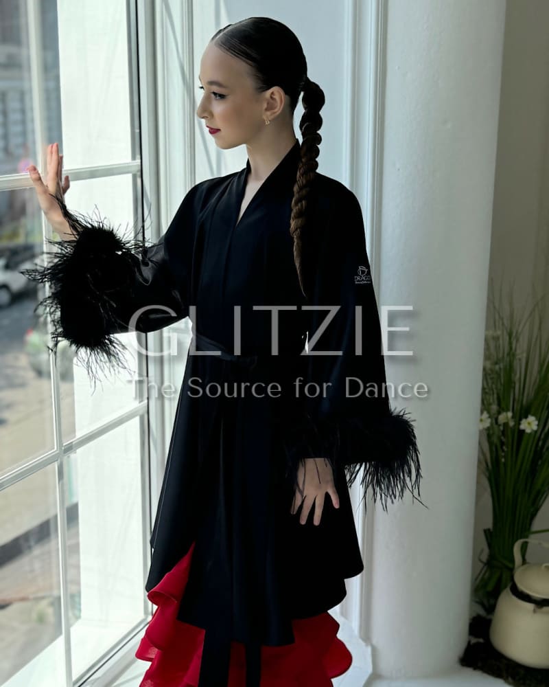 A one-of-a-kind piece for dancers who value elegance, style, and distinction. Crafted from soft, flowing fabric, this robe features wide sleeves adorned with luxurious feather trim. Perfect for pre-performance moments, photo shoots, or as a standout element in your rehearsal wardrobe.