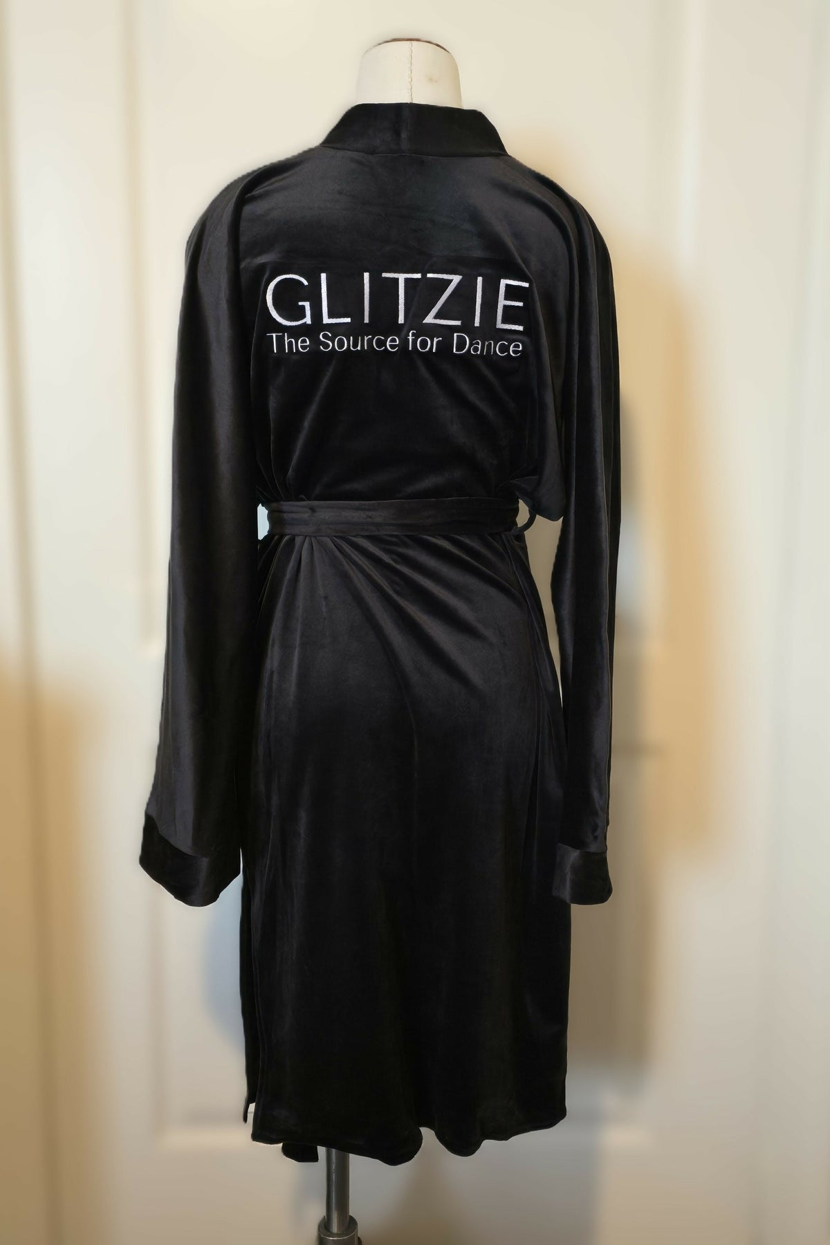 Wrap yourself in elegance and comfort before and after every performance.  Our GLITZIE warmup robe is crafted from luxuriously soft black velour, offering dancers the perfect blend of style and function.  Lightweight yet cozy, it drapes beautifully while keeping you warm during rehearsals, backstage prep, and between rounds.