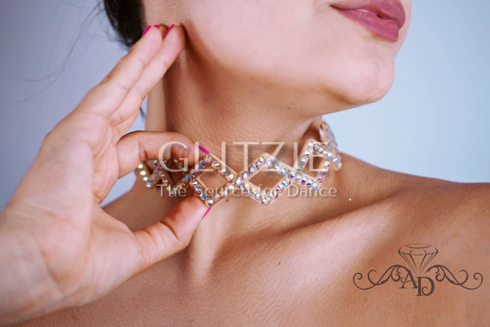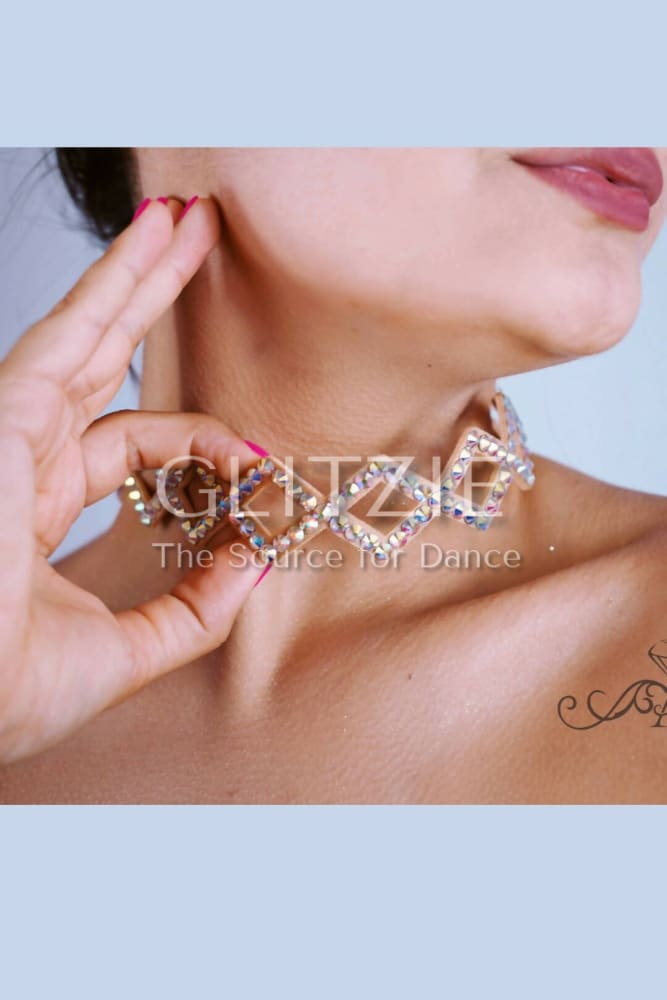 Elegant dance choker with ab color rhinestones "Janice".