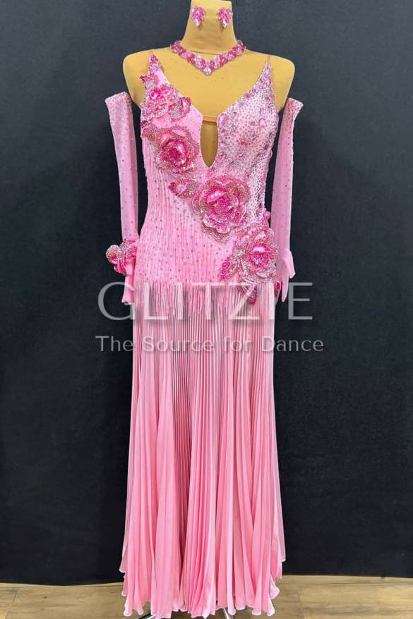 Accessories included: necklace and earrings with sewn rhinestones colors Light Rose and Rose, gloves with glued rhinestones color Light Rose SS16, SS20, elastic wrist bracelet with handmade 3D-flower.