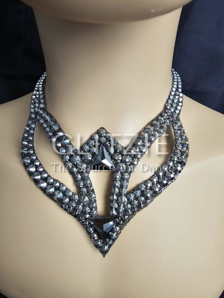 Ballroom dance jewelry necklace. Crystals Hematite (luxe)