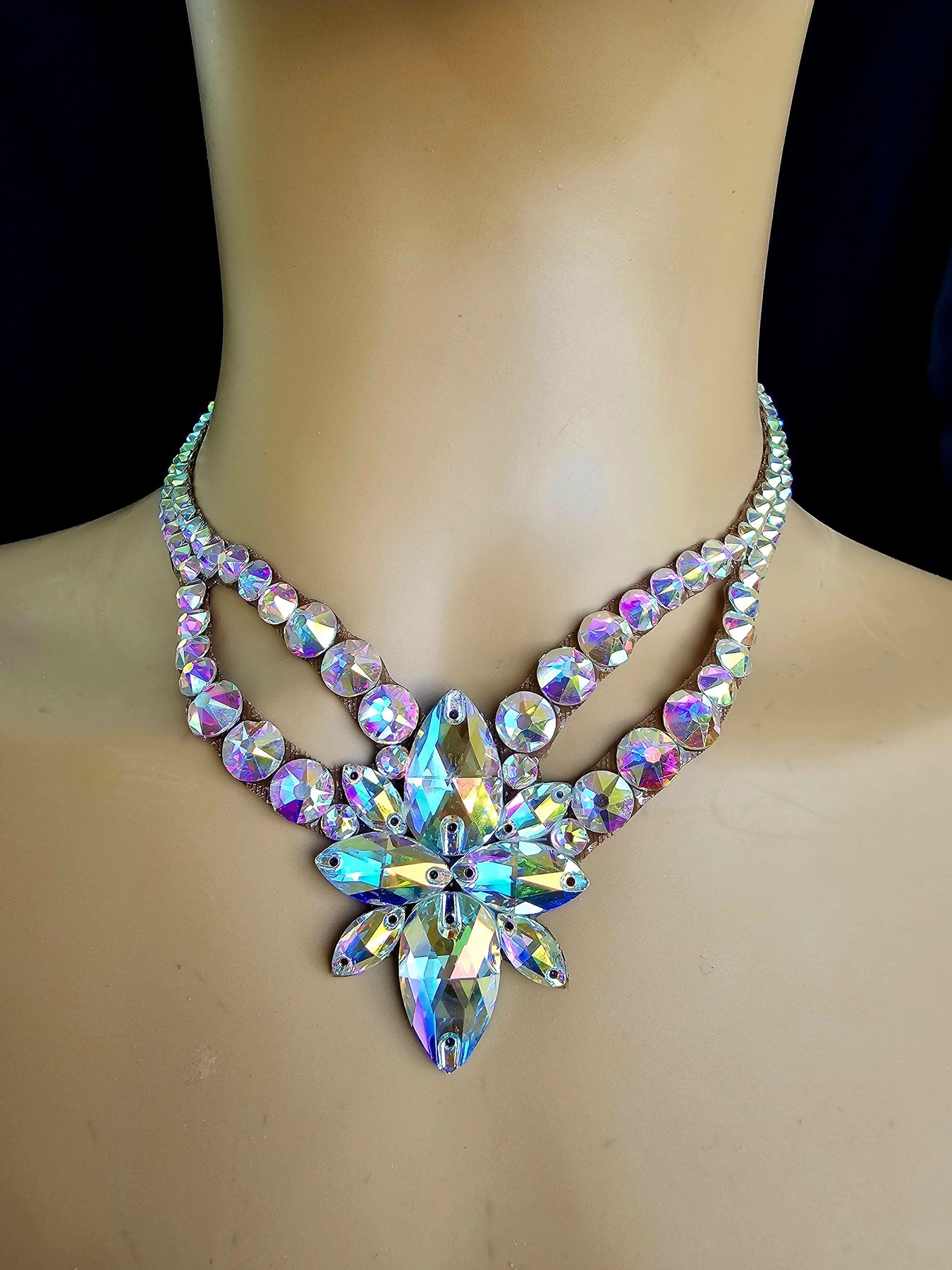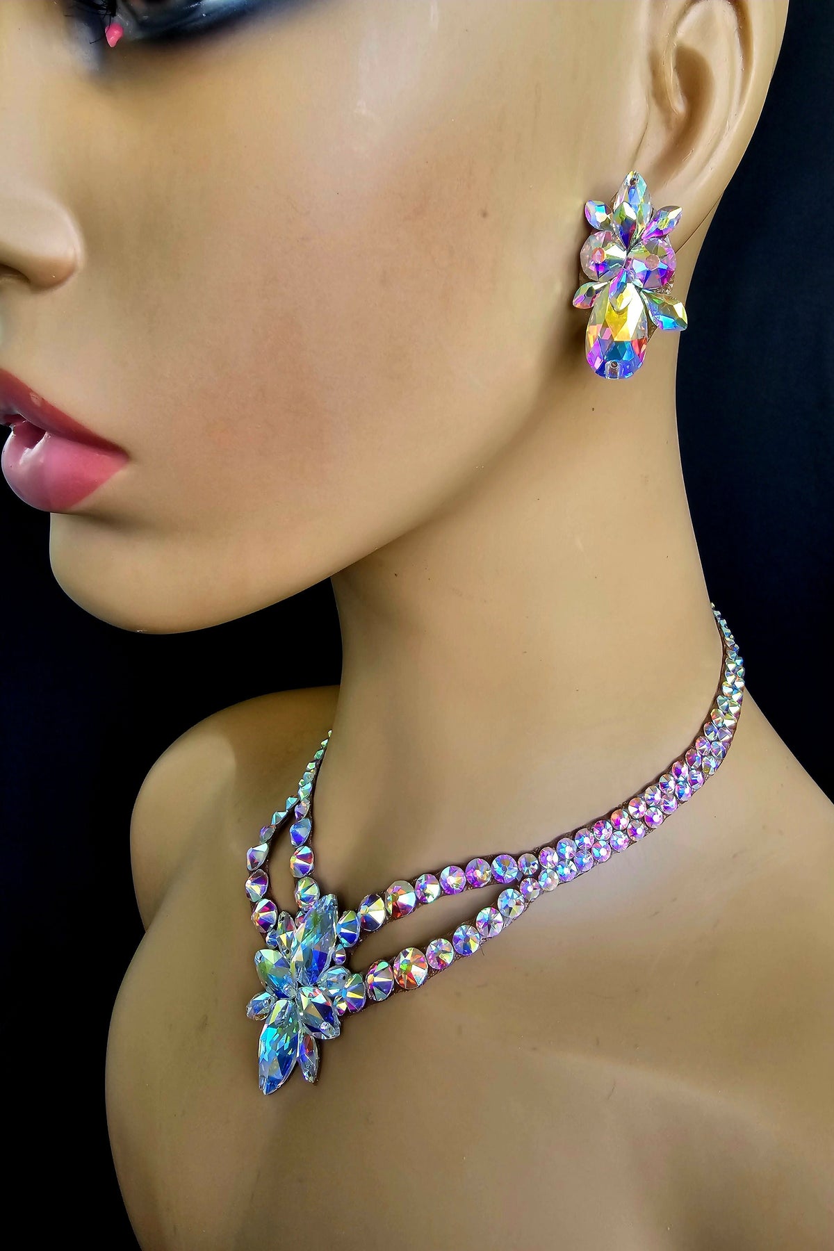 Ballroom Dance Jewelry Set. Necklace and Earrings. Crystals AB (luxe)