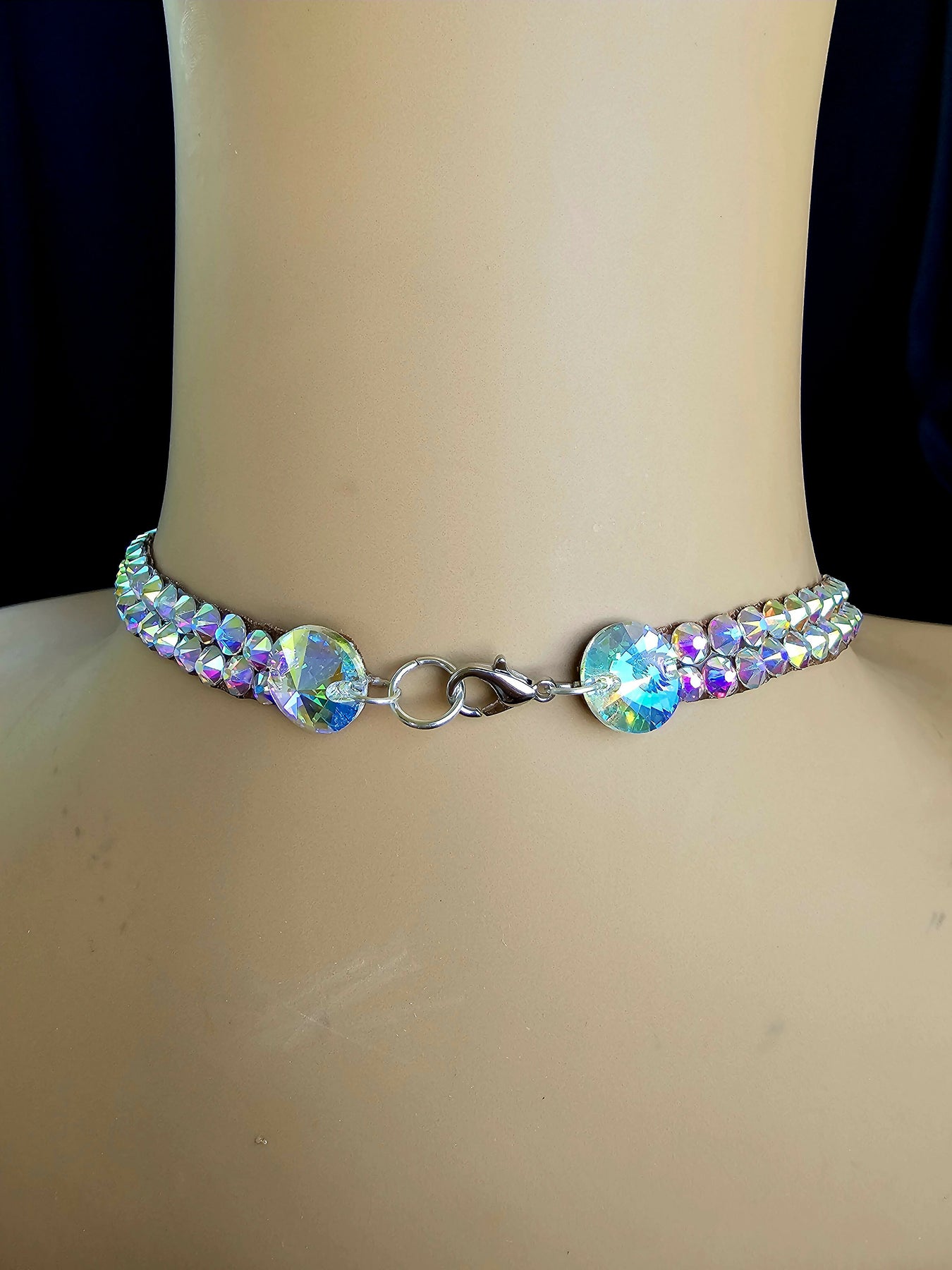 This jewelry set Crafted from lightweight fabric and premium glass crystals. The back is lined with hypoallergenic selecon, ensuring a secure fit during movement and turns, while remaining gentle on the skin. Crystals AB (luxe)