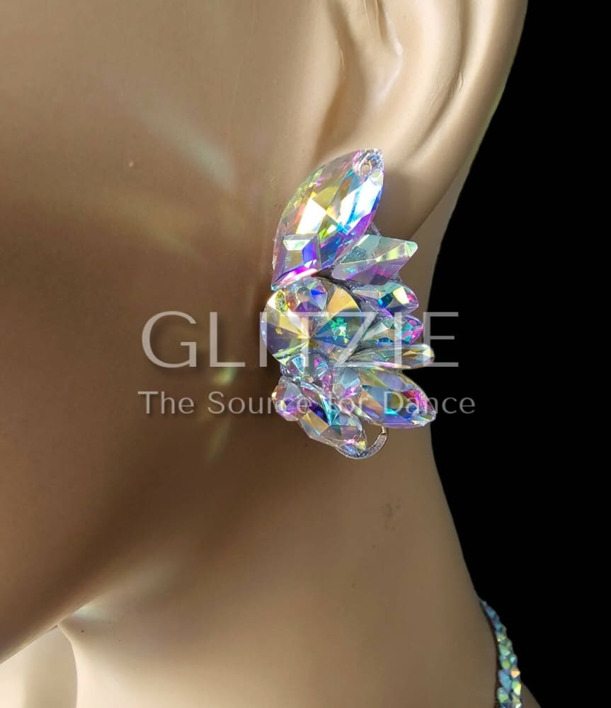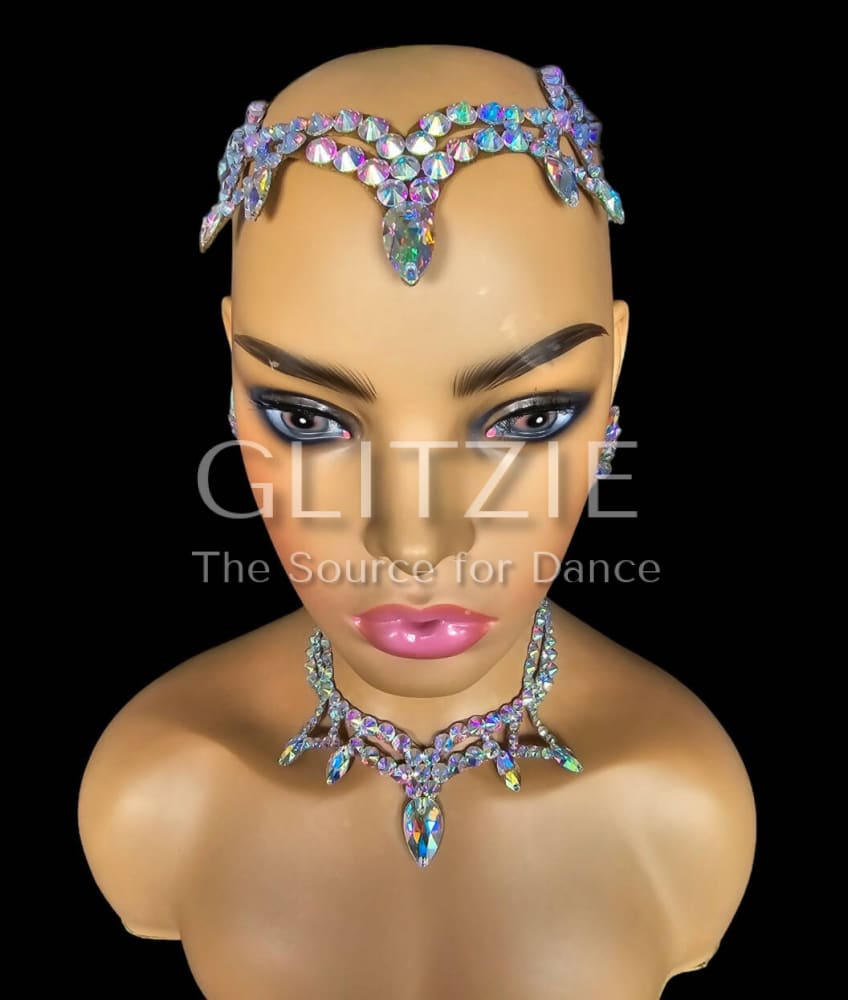Women Ballroom Dance Jewelry Set Necklace , earrings, Hair pcs. Crystals AB(luxe)