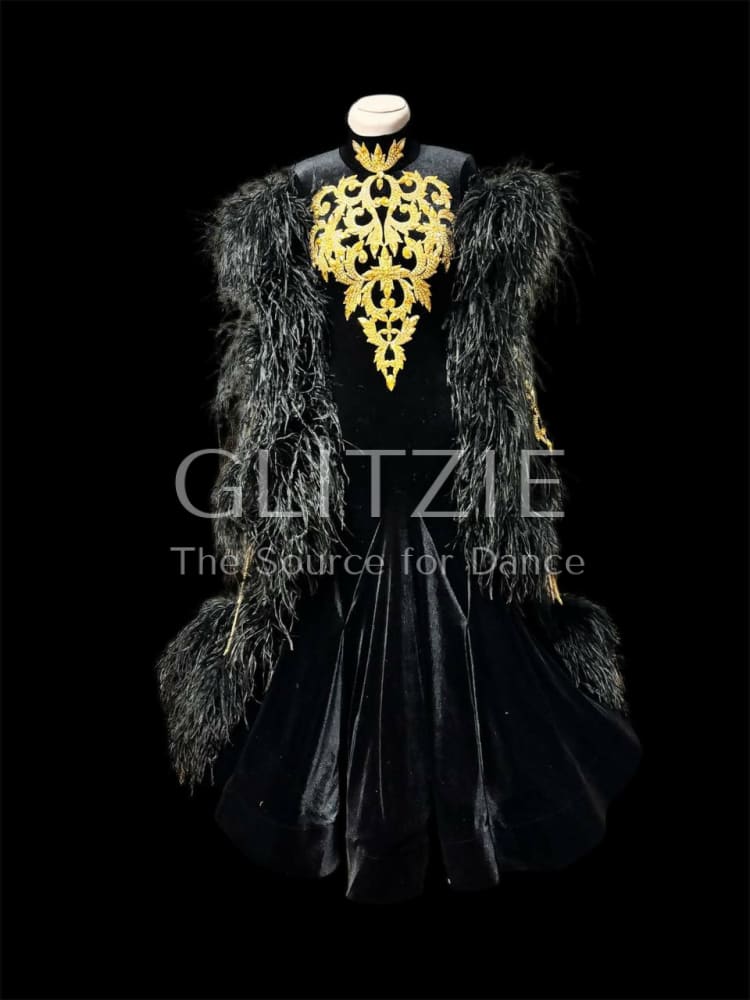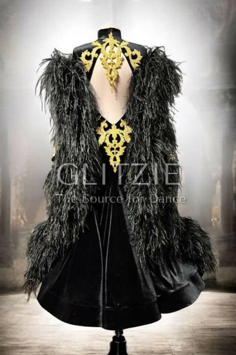 Fabric: stretch velure color Black, bodysuit - stretch net color Black, organza color Gold.