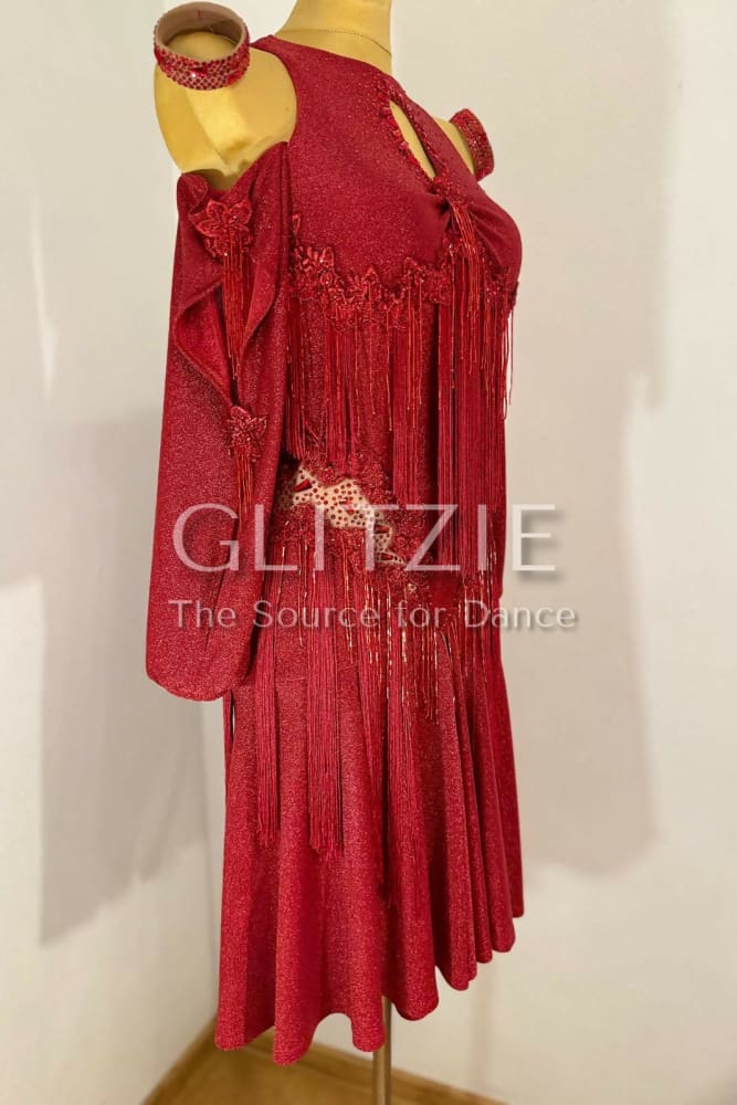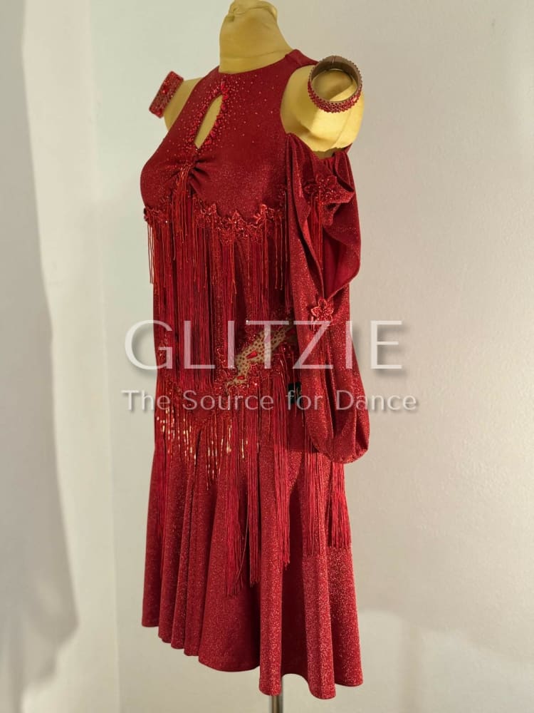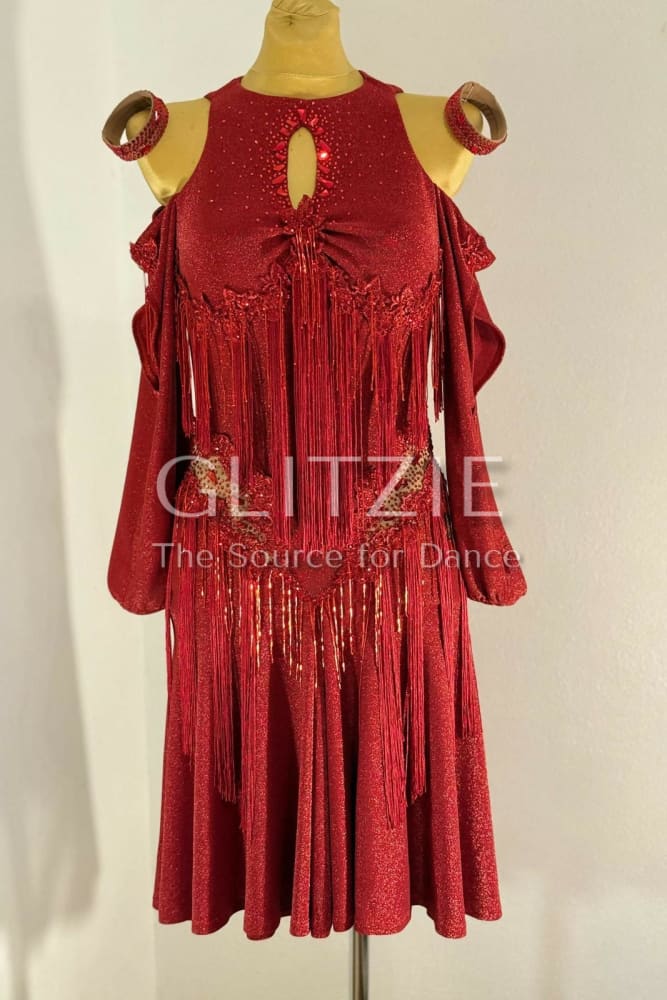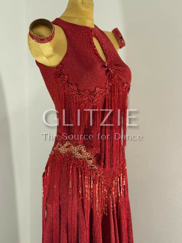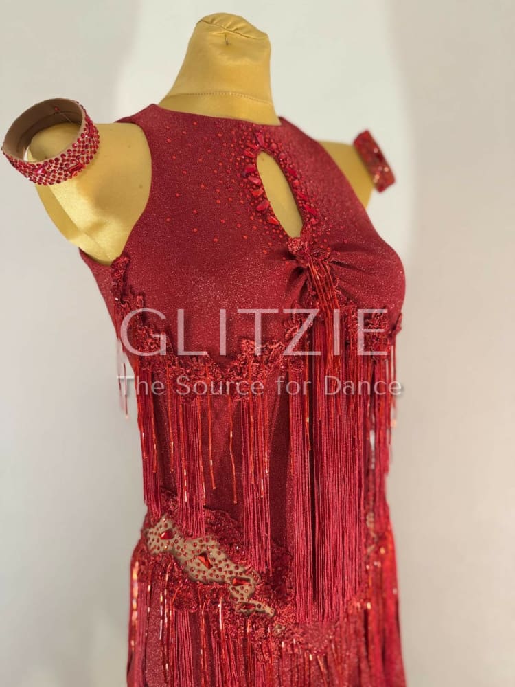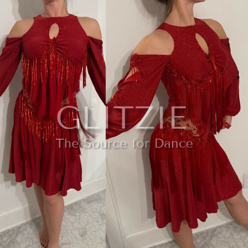 Stunning brand-new red Latin dance dress, never worn. Designed to move beautifully on the floor, this dress is perfect for Latin, performance or competition dancing.